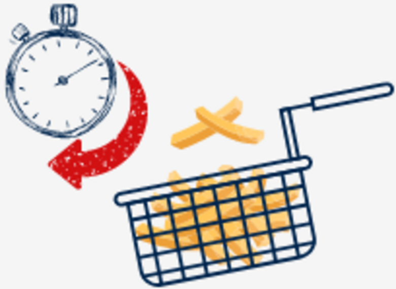 Den Fritteusenkorb zur Hälfte mit tiefgefrorenem Produkt füllen. Ca. 1,5 - 2 Minuten bei 170 –175° C frittieren.